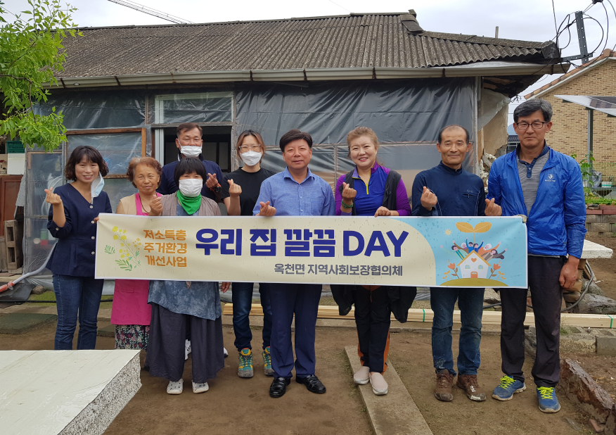 ■ 2020년 옥천면지역사회보장협의체 위기가정 지원(주거환경개선사업) 1) 일 시 : 2020. 6. 24. (수) 9:00 ~ 2) 사 업 명 : 우리집 깔끔DAY 3) 지원대상 : 옥천면 거주 주거취약계층 4) 지원내용 : 주거취약계층 흙벽 보수공사