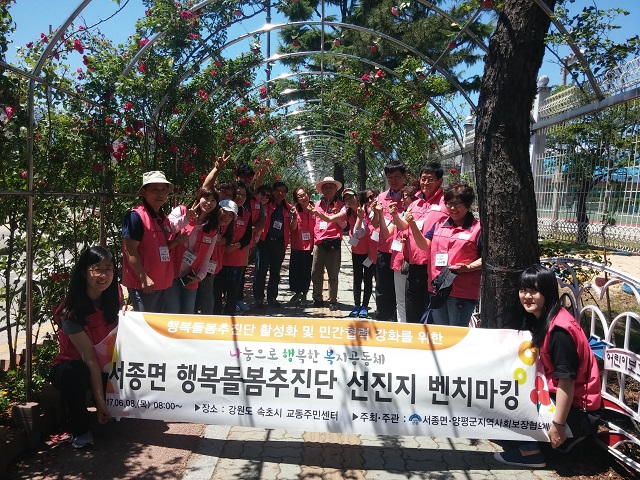 ■ 2017년 서종면 행복돌봄추진단 선진지 벤치마킹 추진 일정 1) 일 정 : 2017년 06월 08일 2) 장 소 : 강원도 속초시 3) 참석대상 : 서종면 행복돌봄추진단(지역사회보장협의체) 30명 4) 내 용 : 지역사회보장협의체 운영 활성화 및 지역복지문제 해결을 위한 선진지 벤치마킹 ►결과 사진자료 ![]() |
