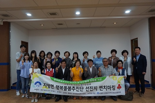 ■ 2017년 지평면 행복돌봄추진단 선진지 벤치마킹 추진 일정 1) 일 정 : 2017년 06월 21일 2) 장 소 : 강원도 동해시 3) 참석대상 : 지평면 행복돌봄추진단(지역사회보장협의체) 25명 4) 내 용 : 지역사회보장협의체 운영 활성화 및 지역복지문제 해결을 위한 선진지 벤치마킹 ►결과 사진자료 ![]() ![]() |
