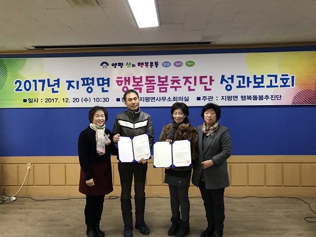 ■ 2017년 지평면 행복돌봄추진단 성과보고회 1) 일 정 : 2017년 12월 20일 2) 장 소 : 지평면사무소 2층 회의실 3) 참석대상 : 지평면 행복돌봄추진단(지역사회보장협의체) 25명 4) 내 용 : 2017년 지평면행복돌봄추진단 성과보고 ![]() ![]() ![]() ![]() |